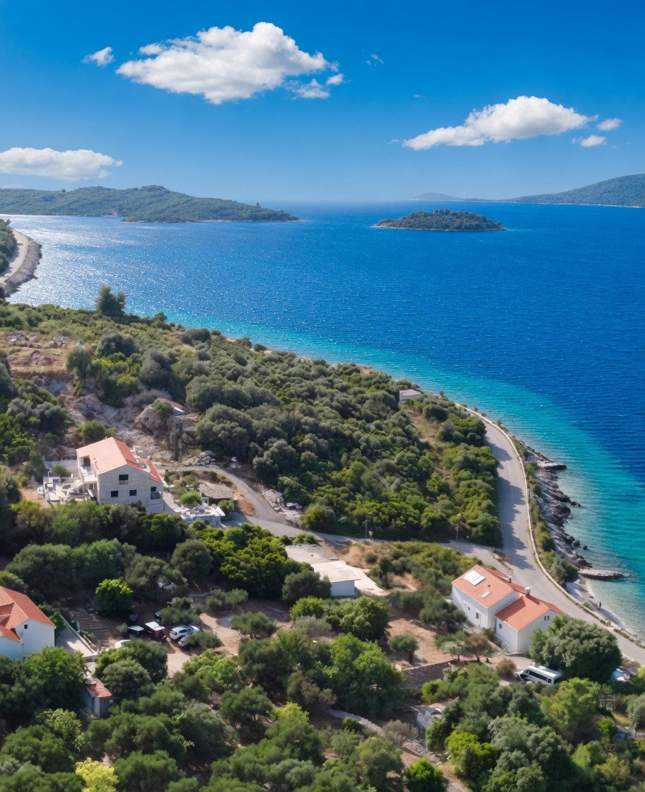 Øen Korčula, byggegrund, første række fra havet. Der kan bygges 2 eller 3 villaer (eller kun én, hvis du ønsker det). Det er nødvendigt at udarbejde en byudviklingsplan - bygbarheden vil være 30-40%. En sjælden og stor mulighed...